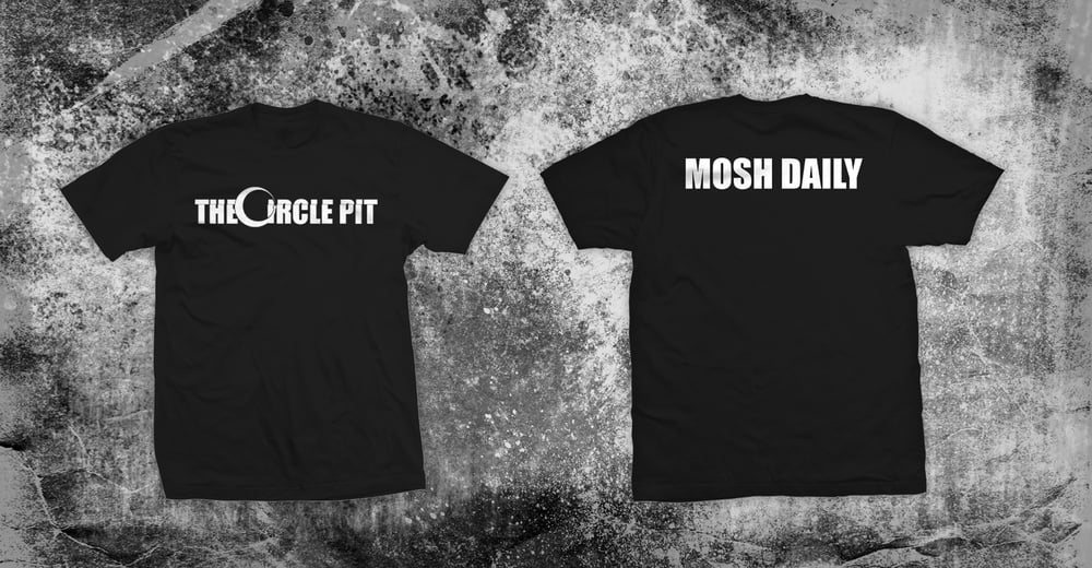 Grab one of our shirts to support us and show some love when you're in the pit! On the front we have our logo and on the back it says "Mosh Daily" on the upper back.